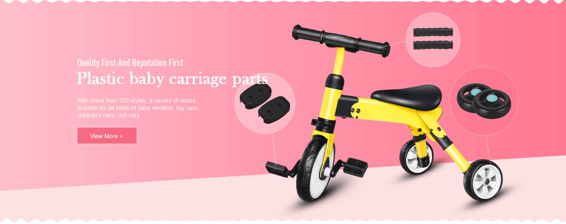Cixi yingjiang bicycle fittings co., LTD. Since its founding in 1985, after wind and rain, after nearly 30 years of development, the development, has now become the same industry have a certain scale professional production of various kinds of plastic parts, EVA foam tyre buggies, plastic car basket, plastic tool box, plastic chain cover, twisting, vehicles, accessories, plastic car buggies buggies basket, plastic toolbox buggies, plastic chain cover buggies, twisting, car, plastic twisting, car for children of baby carrier type plastic accessories production and sales of manufacturers.
